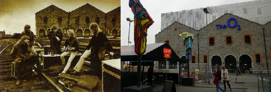 Well that’s it for now. Maybe I’ll do a real article some day, but that should be enough to help get public interest started on the 100% official genuine Def Leppard walking tour of Dublin. I leave you with a then and now shot of The Point Depot / The O2. The then photo features Leppard in the 80’s just sitting around – proper Rock (and I feel like some gimp-Perez Hilton type who needs a shower to wash off the words).