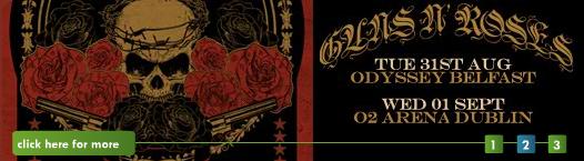 GUNS N’ ROSES have announced two Irish shows. The legendary hard rock band will bring their Chinese Democracy World Tour to Belfast and Dublin, August 31st and September 1st respectively. Tickets go on sale Friday, June 11th